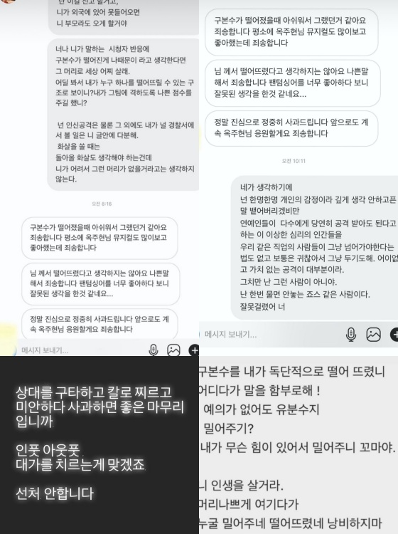 사진에는 악플러와 나눈 대화와 이에 대한 옥주현의 심경이 드러나있다.