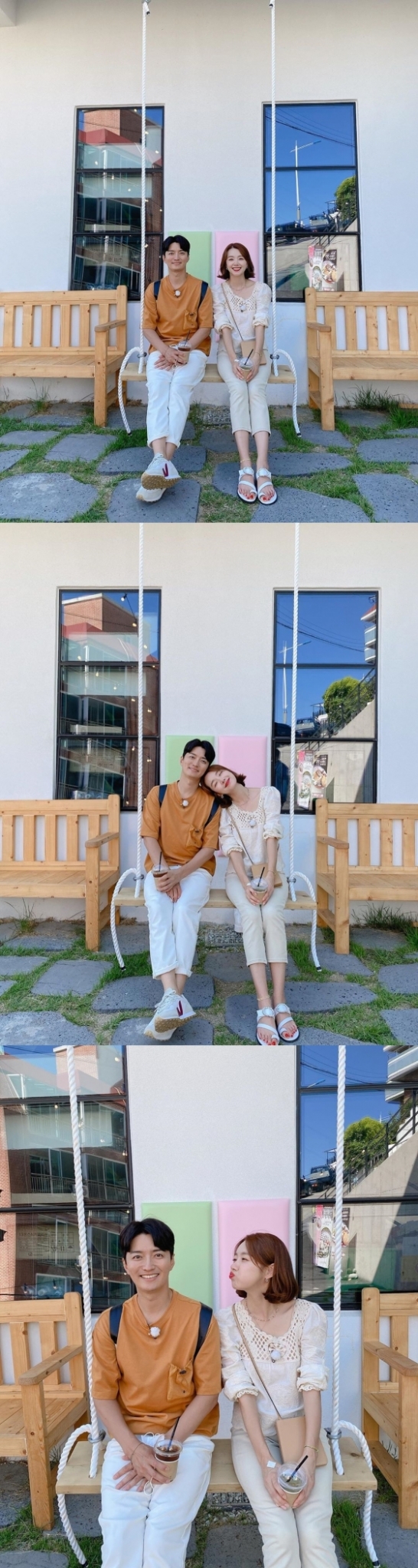 둘은 그네에 앉아 서로 머리를 맞대거나 뽀뽀를 하는 등 포즈를 지어 잉꼬부부의 모습을 보였다.