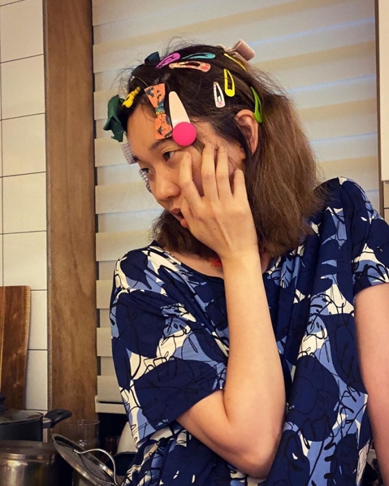 공개된 사진 속에는 머리핀을 잔뜩 꽂은 채 카메라를 응시하는 장윤주의 모습이 담겼다. 장윤주는 딸의 장난에도 시종일관 진지한 표정을 지으며 톱모델의 자태를 뽐냈다.