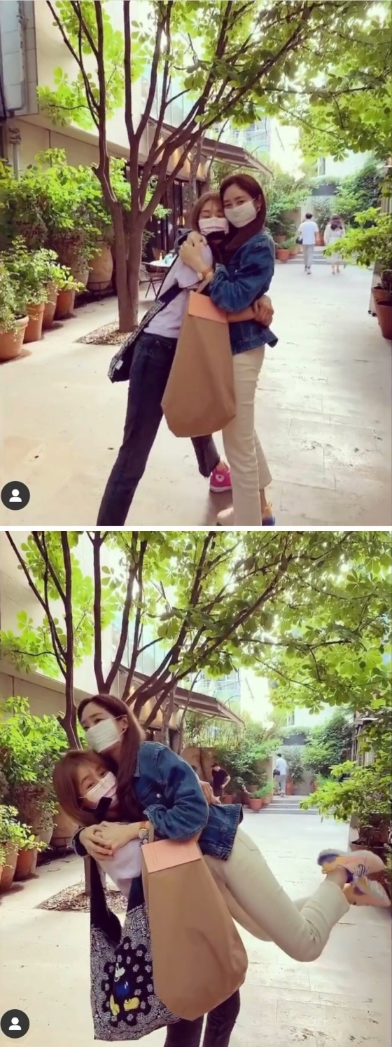 사진 속 옥주현은 서있는 성유리를 번쩍 들며 괴력을 선보였다. 평소 운동광으로 소문난 옥주현의 근력이 엿보인다.