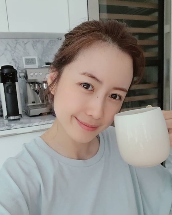 홍은희는 10일 오전 자신의 인스타그램에 "비와요. 커피 한 잔 하세요. 둘째 내려주고 왔는데. 세수를 안했군요. 티 안나요"라는 글과 사진을 게재했다.