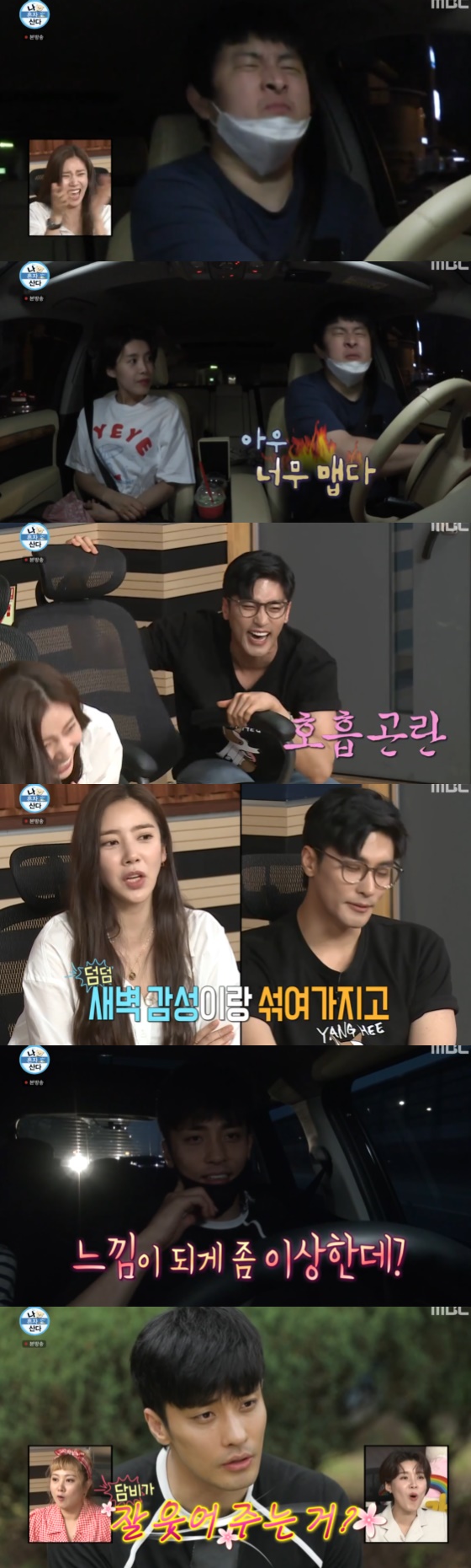 기안은 "내가 반말을 했었나"라며 "좀 자라. 잤으면 좋겠다"고 말해 웃음을 안겼다. 장도연은 "왜 하필 내가 기안 오빠 차를 탔을까. 저도 낯가림이 있고 그 오빠도 낯가림이 있는데"라며 어색함을 표했다.