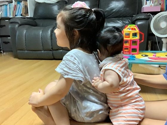 공개된 사진 속에는 이윤지의 다리 위에 앉은 첫째 딸 라니와 등 뒤에 매달린 둘째 소울의 모습이 담겼다. 행복한 듯 웃고 있는 라니의 모습이 보는 이들을 덩달아 미소 짓게 한다.