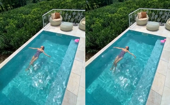 공개된 사진 속에는 야외 수영장에서 여유롭게 수영을 즐기는 진재영의 모습이 담겼다. 진재영은 드넓은 수영장과 늘씬한 몸매를 자랑하며 눈길을 끌었다.