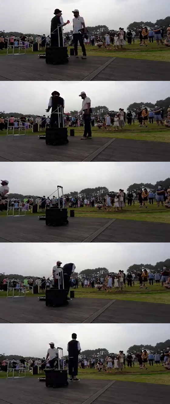 한 거리예술가가 울산 간절곶공원 공연 중 겪은 일이 네티즌의 공분을 사고 있다.
