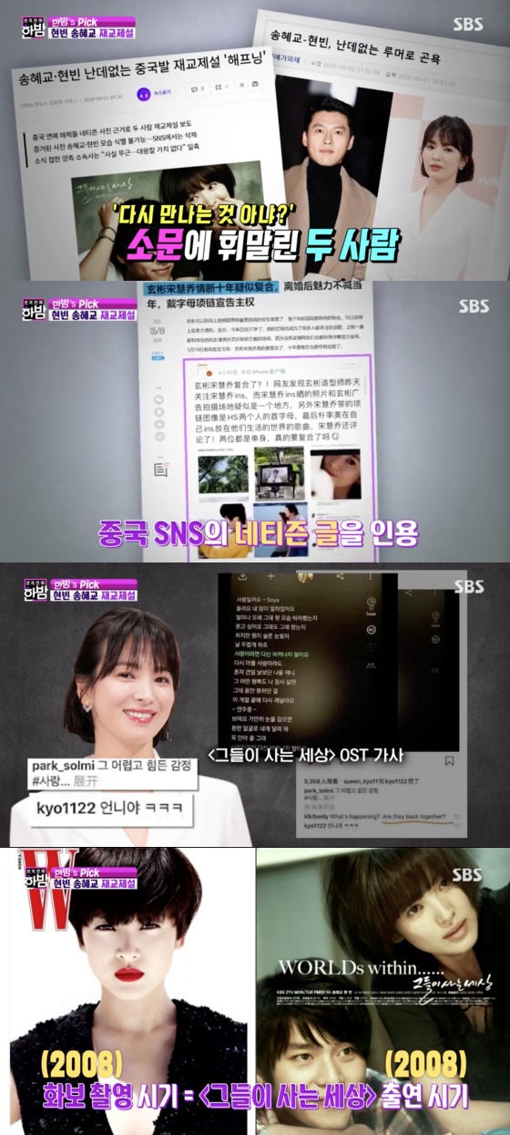 5일 오후 방송된 SBS 연예 정보 프로그램 '본격연예 한밤'은 송혜교와 현빈의 재결합설을 다뤘다.