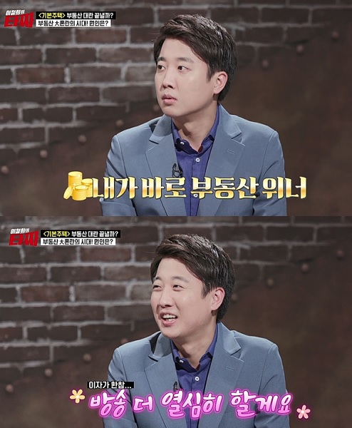이날 방송에서 이준석 전 최고위원은 문재인 정부 초반에 집을 사서 지금 2배가 올랐다고 고백한다. 이 같은 깜짝 고백에 이철희 소장은 "그럼 이제 방송 좀 줄여도 되겠네"라고 농담을 하고 이준석 전 최고위원은 "대출 이자를 부담해야 한다"며 웃는다.