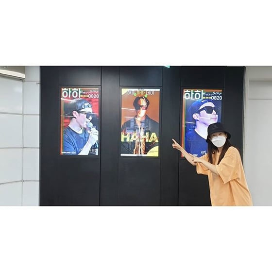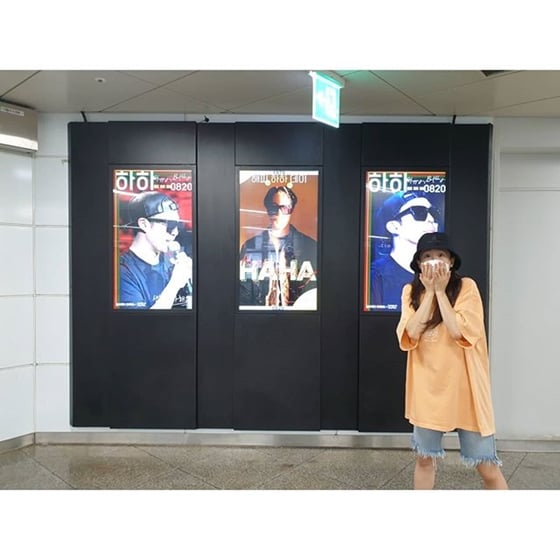 공개된 사진 속 별은 하하의 생일을 축하하는 전광판 광고와 인증샷을 찍고 있다. 별은 하하를 향한 팬들의 애정에 감격한 듯 밝게 웃고 있다.