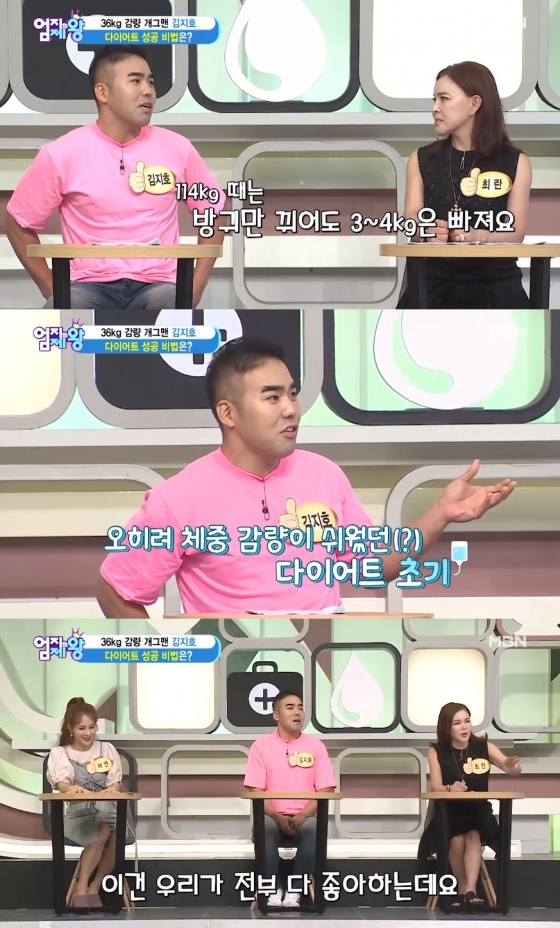개그맨 김지호가 체중을 무려 36kg이나 감량한 비법을 밝혔다.