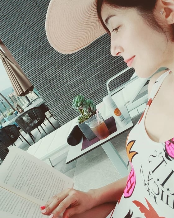 사진을 접한 네티즌들은 "예쁘다" "수영장에서 책이라니" "교양미 넘치네" 등 다양한 반응을 보였다.