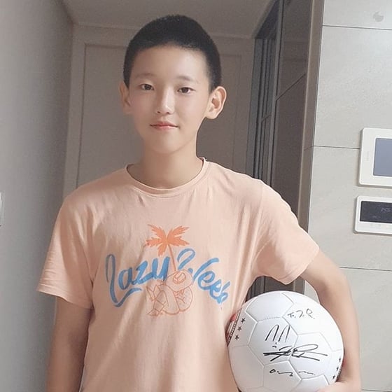 공개된 사진 속에는 폭풍성장한 송지욱의 모습이 담겼다. 송지욱은 전 축구선수이자 스포츠해설가 이영표의 싸인이 그려진 축구공을 들고 카메라를 응시하고 있다.