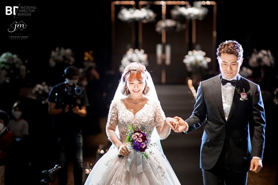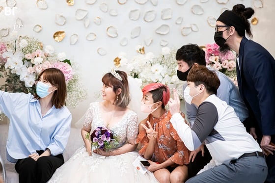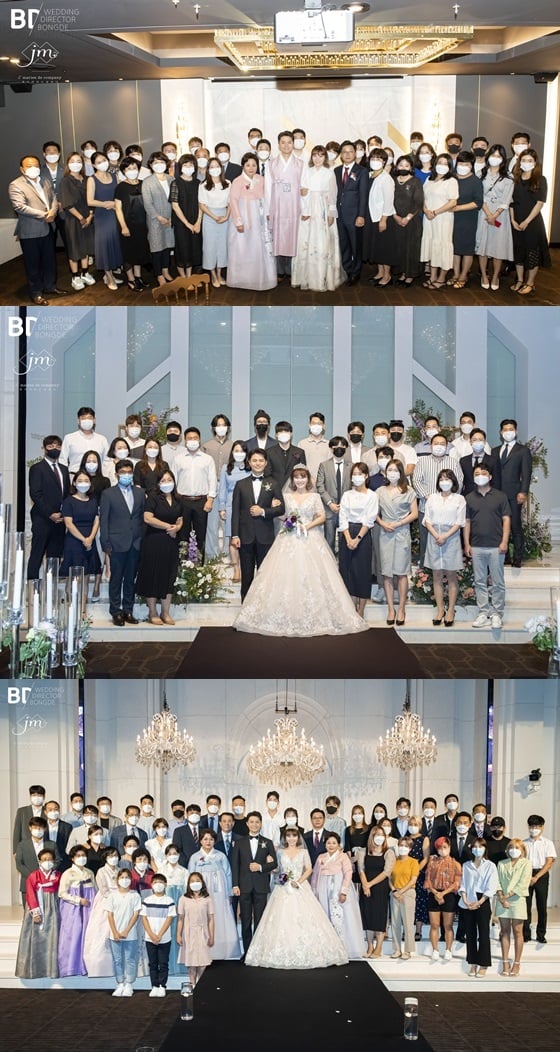해피메리드컴퍼니 관계자는 "실내 결혼식은 50명 미만만 수용할 수 있어 3개 층을 예약해 한 공간에 49명이 입장, 예식을 지켜봤다. 단체 사진만 모두 세 번 촬영했다"고 말했다.