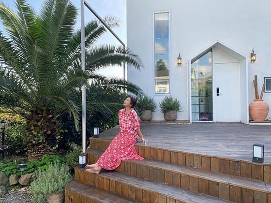 공개된 사진 속 진재영은 빨간색 원피스를 입은 채 어딘가를 응시하고 있다. 럭셔리한 제주도 자택을 배경으로 여유로움을 만끽하는 그의 모습이 많은 이들의 부러움을 샀다.