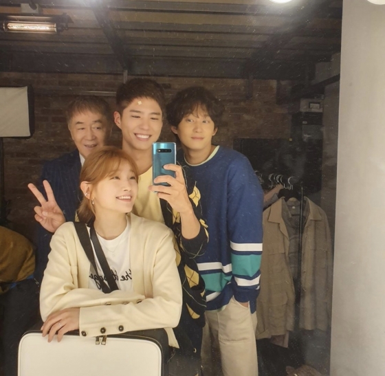 사진 속 박소담과 박보검, 한진희, 권수현은 웃으며 사진을 찍고 있다. 네 사람의 훈훈한 미소가 돋보인다.