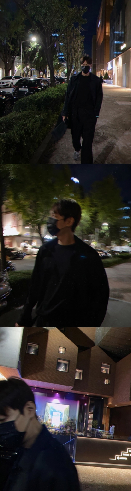 공개된 사진 속 이민호는 상하의와 마스크까지 검은색으로 무장한 패션을 하고 있다. 그럼에도 드러나는 일명 '연예인 포스'가 눈에 띈다.