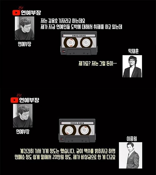 또한 그는 이종원도 언급했다. 이종원은 통화에서 "정킷 가면 음료수, 커피 그런 걸 주는 공간이 있다. 가서 편하게 있다 보니 사람들 눈에 띄었던 것 같다"며 "아주 안 했다고 이야기는 안 하겠다"며 기계에서 20만원 정도 수준만 즐겼다고 해명했다.