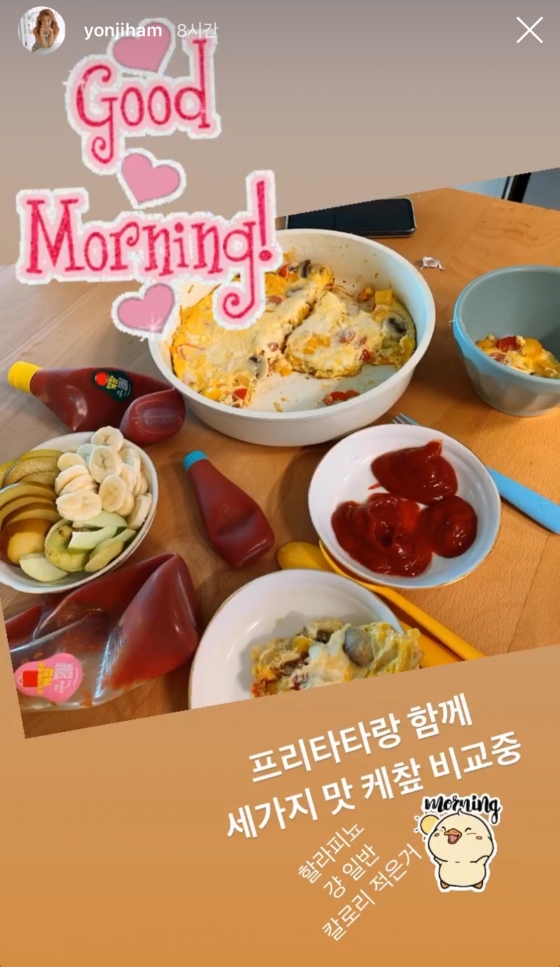 또 다른 사진 속에는 완성된 요리들이 담겨있다. 함연지는 "프리타타랑 함께 세 가지 맛 케찹 비교 중"이라고 전했다.