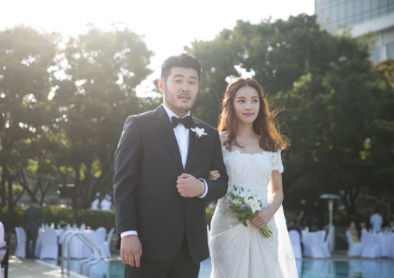 공개된 사진 속에는 웨딩드레스와 턱시도를 입고 아름다운 모습을 뽐내고 있는 김기방, 김희경의 모습이 담겨있다.