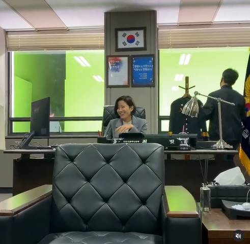공개된 영상은 tvN 토일드라마 '비밀의 숲2' 촬영장의 모습이다. 여기엔 경찰청 정보부장 겸 수사구조혁신단 단장 최빛 역을 맡은 전혜진의 모습이 담겨 있었다.