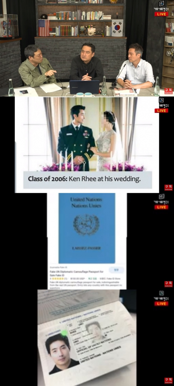 이후 김용호와 김세의는 방송을 통해 "이근이 UN 직원이면 (여권에) UNA라고 적혀 있어야 하는데 저기에는 UNO라고 적혀 있다. UNO는 UN 산하 기관인 것이고 이근은 UN 산하 직원이면서 UN 직원이라고 사칭한 것"이라고 밝혔다.