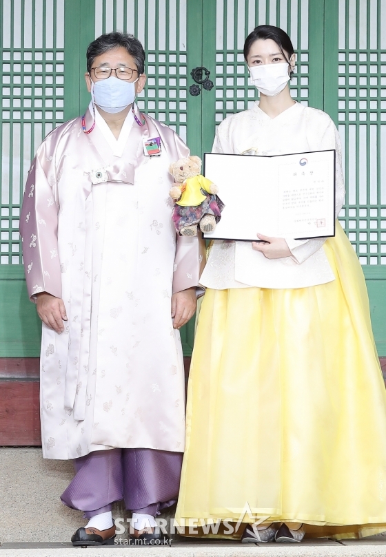 연예방송'2020 한복문화주간' 홍보대사로 위촉된 권나라[★포토]발행 : 2020.10.16 ・ 17:22김창현 기자배우 권나라가 16일 오후 서울 종로구 창덕궁 가정당에서 '2020 한복문화주간' 홍보대사로 위촉된 뒤 박양우 문화체육관광부 장관과 포즈를 취하고 있다.<저작권자 © 스타뉴스, 무단전재 및 재배포 금지>권나라한복추천 기사김창현 기자기자홈좋아요 연예-방송의 인기 급상승 뉴스연예-방송의 최신 뉴스