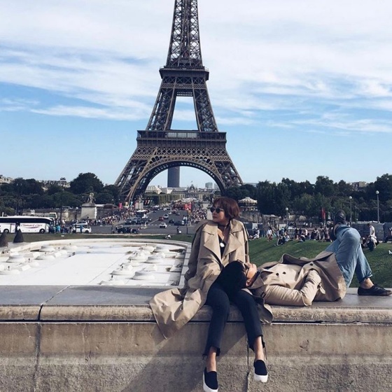 사진 속에는 에펠탑을 배경으로 파리의 분위기를 만끽하는 진재영 진정식 부부의 모습이 담겨있다. 특히 진정식은 진재영의 무릎을 베고 누워 달달함을 드러냈다.