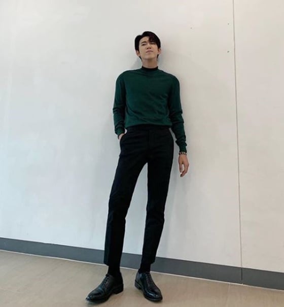 사진 속에는 광희가 타이트한 블랙 바지와 폴라티를 입고 벽에 기댄 채 포즈를 취한 모습이 담겨 있다. 특히 상체에 비해 길쭉길쭉한 하체 비율이 눈길을 끈다.