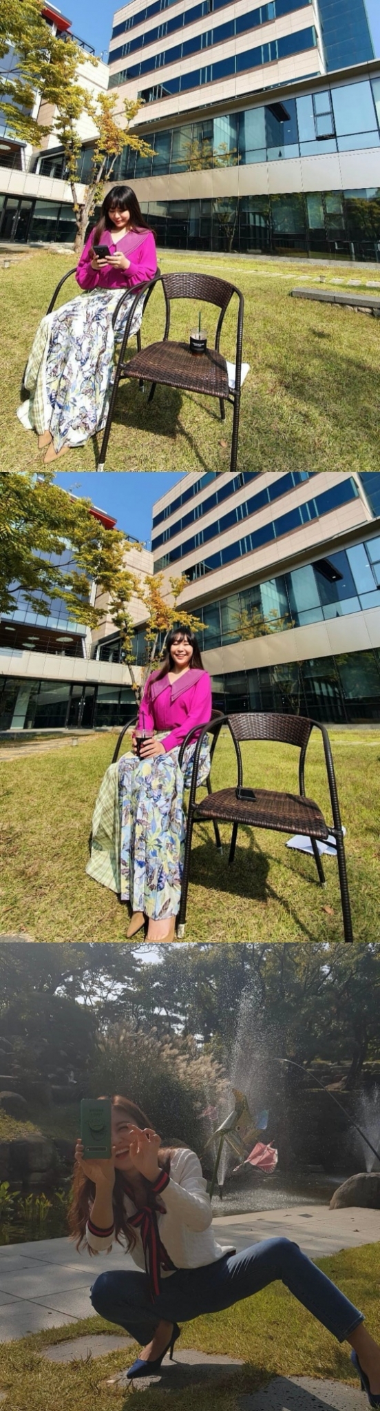 사진 속 정주리는 화사한 옷차림으로 야외 의자에 앉아있다. 정주리는 맑은 날씨와 어우러져 밝은 분위기를 연출했다. 키가 커보이는 사진 구도가 무엇보다 눈에 띈다. 정주리는 허윤선이 자신의 사진을 찍기 위해 고군분투하는 사진을 함께 올려 웃음을 자아냈다.