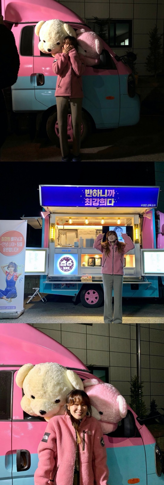 배우 최강희가 커피차 인증을 하며 귀여운 매력을 자랑했다.
