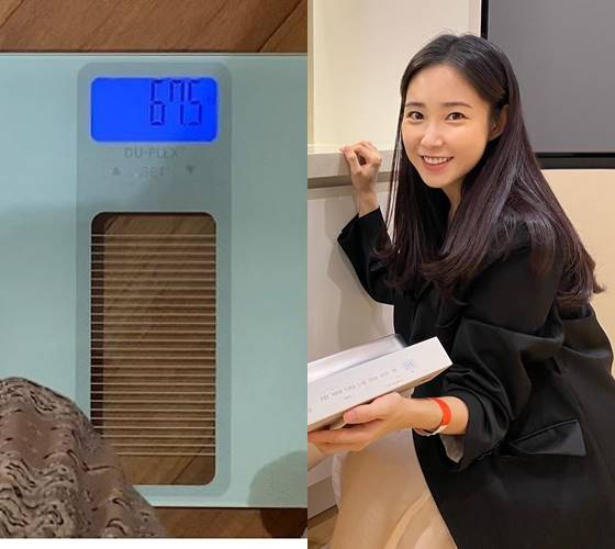그는 21일 인스타그램에 "아기는 3키로인데 그럼 67.5 빼기 3 은?"이라며 67kg의 체중 인증샷을 공개하기도 했다.