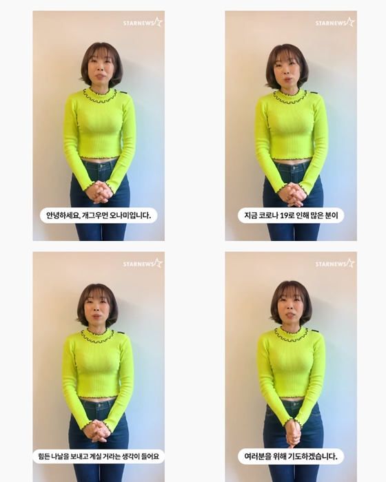 오나미는 "여러분 조금만 힘내시고요. 여러분을 위해 기도하겠습니다. 조금만 더 힘내요"라면서 코로나19 극복을 위한 응원 메시지를 스타뉴스 독자들에게 전했다.