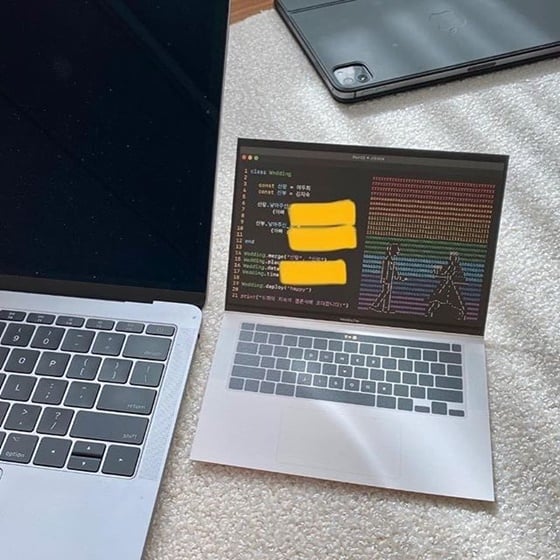 공개된 사진은 이두희와 지숙의 청첩장이다. 노트북 모양의 코딩 중인 화면이 담겨있어 눈길을 끈다.