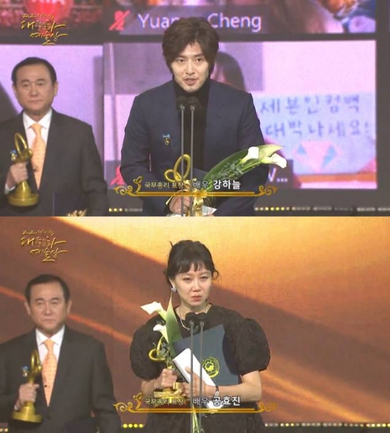 배우 공효진과 강하늘이 '2020 대한민국 대중문화예술상' 국무총리 표창을 수상했다.