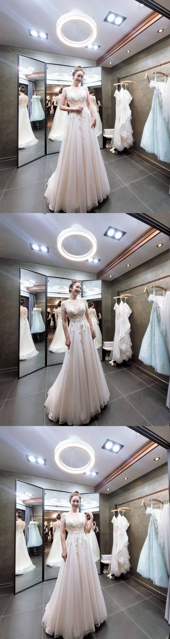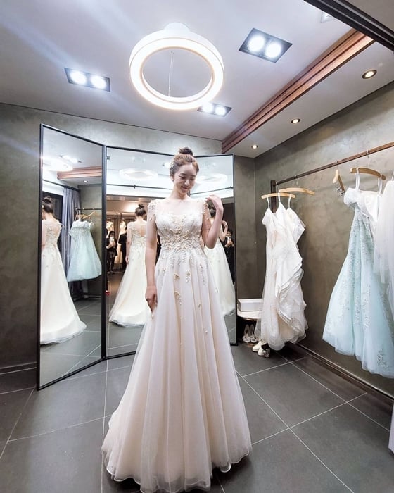 배슬기는 "특별히 한땀한땀 제작해주신 본식 드레스가 정말 너어무 예뻐서 올리고 싶지만 아직 신랑에게 공개를 안해서 올리지도 못하네요. 요 아이는 2부 드레스입니다~!"고 했다.