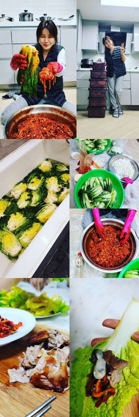 21일 오전 신애라는 자신의 인스타그램에 "어머님이 농사지으신 배추 종일 절이고 좀 전에 끝났네요. 김장엔 역시 보쌈^^"이라고 글을 작성했다.