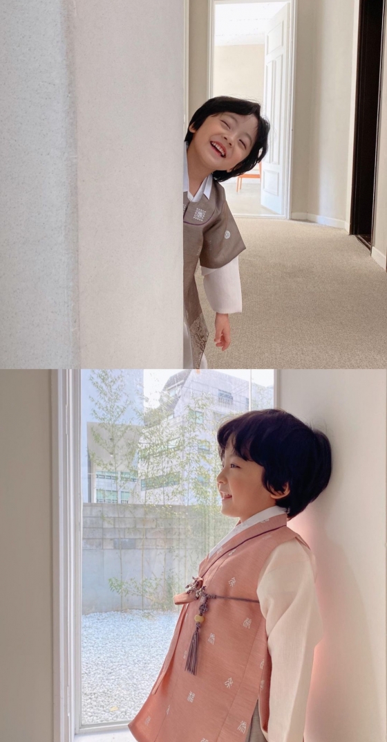 공개된 사진 속에는 예쁘게 한복을 차려입은 서우진 군이 해맑게 미소 짓고 있는 모습이 담겨있다.
