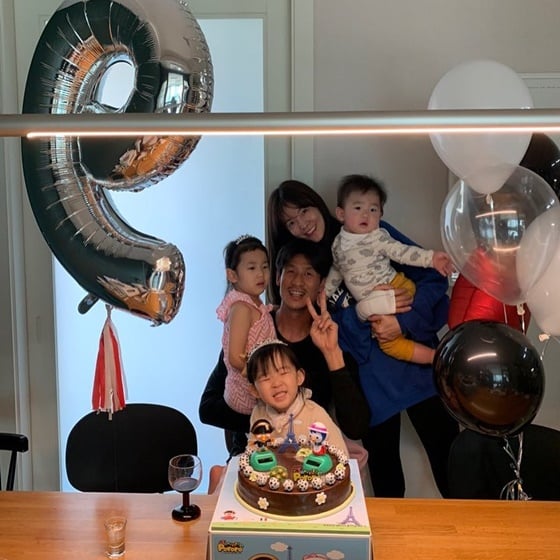 공개된 사진 속에는 옹기종기 모여 앉은 김성은, 정조국 부부와 자녀들의 모습이 담겨있다. 그들은 밝게 웃으며 카메라를 응시하고 있다.