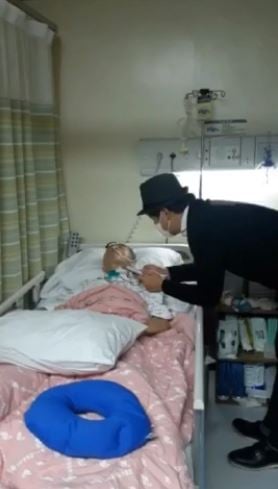 영상에서 이씨는 이외수에게 편지를 읽어주고 있다.