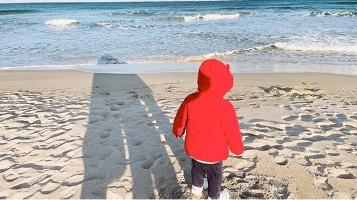 공개 된 사진 속에는 바닷가를 찾은 아이가 빨간색 점퍼를 입고 바다를 보고 있는 모습이 담겨 있다.