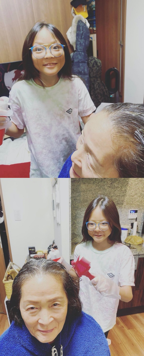 사진 속에는 추사랑이 할머니에게 염색해주는 장면이 담겨있다. 추사랑은 소녀의 모습으로 등장해 네티즌들의 놀라움을 자아냈다.