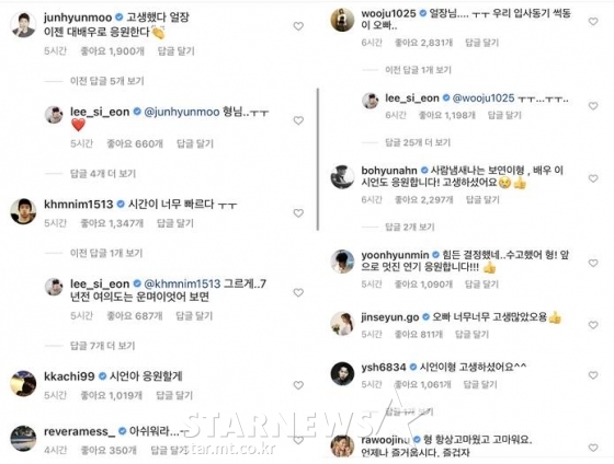 이밖에 강소라, 유세윤, 양세형, B1A4 신우가 이시언의 향후 행보를 응원하며 '나 혼자 산다' 애청자였음을 밝혔다. 이시언은 해당 댓글이 또 댓글을 달며 감사함을 드러냈다.