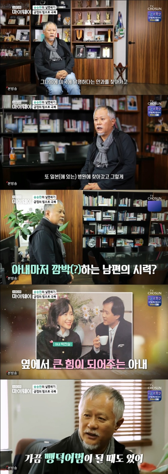 원인 불명의 실명 위기에 놓인 배우 겸 공연 제작자, 연출가인 송승환이 아내에 대해 이야기 했다.