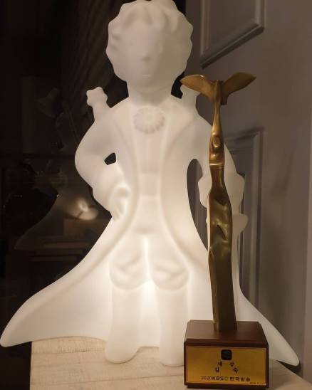 이와 함께 김숙은 집에서 자신이 아끼는 '어린왕자 조명' 앞에 대상 트로피를 올려놓은 인증샷을 공개했다.
