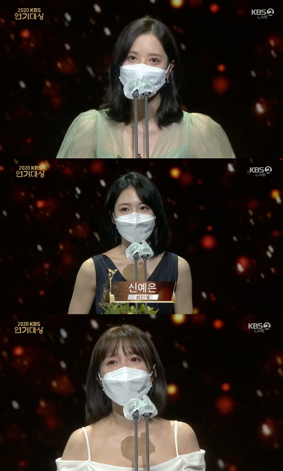 '어서와' 신예은은 "항상 제 곁에서 응원해주는 은하수 분들도 감사합니다. 아직 이 상을 받기에 부족한 게 많다고 생각하는데 이 상은 함께 고생한 스태프분들이 받는 상이라고 생각하고 앞으로 더 열심히 노력하겠습니다"고 소감을 밝혔다.