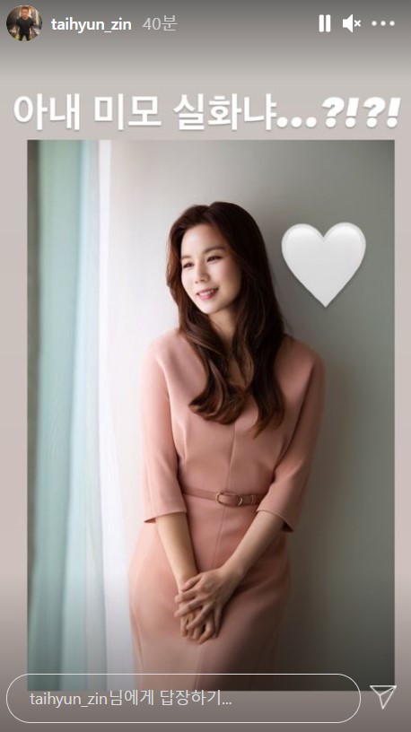 2일 오전 진태현은 자신의 인스타그램 스토리에 "아내 미모 실화냐...?!?! ♥"라는 글과 함께 한 장의 사진을 게재했다.