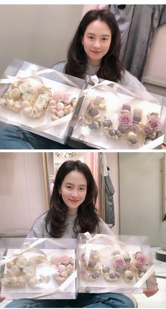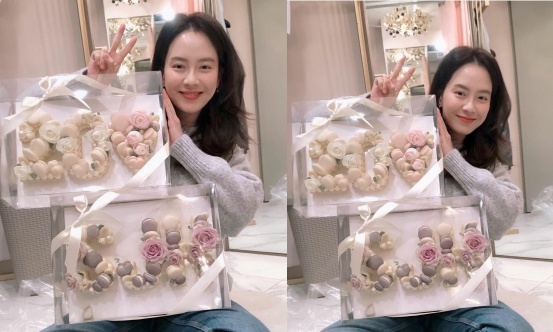 배우 송지효가 데뷔 20주년 기념 선물을 인증했다.