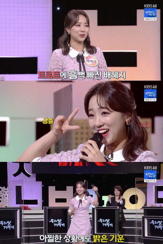 기상캐스터 배혜지가 '우리말 겨루기'에서 상큼하고 발랄한 '옆집 누나' 무대를 꾸몄다.