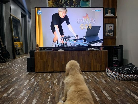공개된 사진에는 박은석의 강아지(반려견)가 TV에 나온 박은석의 모습을 보고 있다. 박은석 강아지 뒷모습만 담겼지만, 흡사 사람이 TV에 빠진 듯해 눈길을 끈다.