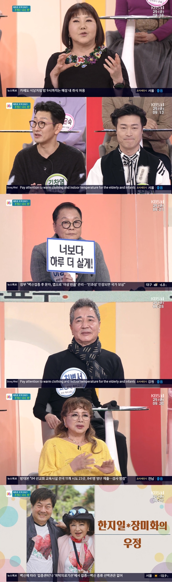 29일 오전 방송된 KBS 1TV '아침마당'의 '생생토크' 코너는 '새로운 도약 2021. 우정은 나의 것!'으로 꾸며졌다. 이상해·최병서, 김미숙·신은숙, 김창열·조문근이 절친으로 출연했다.