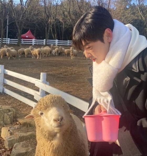 차은우는 30일 오후 자신의 공식 SNS에 양떼 목장에서 찍은 사진을 게시했다.